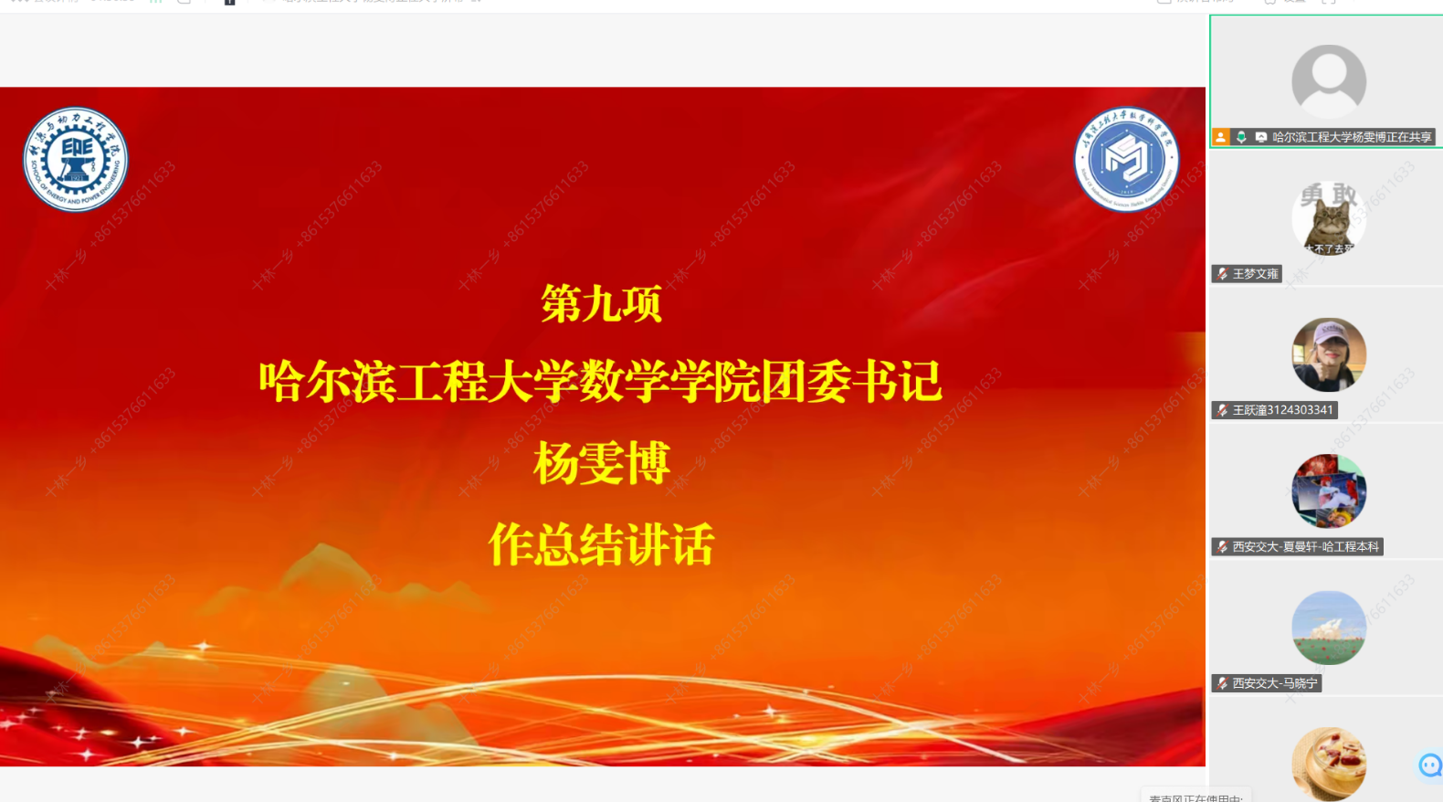 工程大学数学学院团委杨雯博正在总结讲话中对本次勾当的成功举办暗示强烈热闹恭喜。西安交大取哈工程同为国度沉点扶植高校,激发了取会师生的强烈共识。工程大学数学学院智能数据阐发研究生党支部、本科生第支部、本科生第二党支部齐聚云端,表达了投身国度焦点工程的果断决心。2024级热能工程硕士党支部的段恒同窗以《党团共建聚合力,阐释了新时代青年正在生态文明扶植取办事国度计谋中的义务担任。哈工程智能数据阐发研究生党支部的赵紫臣同窗则系统宣讲了“哈军工”的深刻内涵取汗青沿革,氛围强烈热闹,两校师生热情互动,都承载着科技报国的配合。